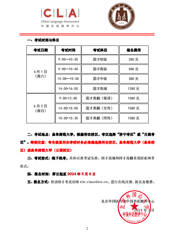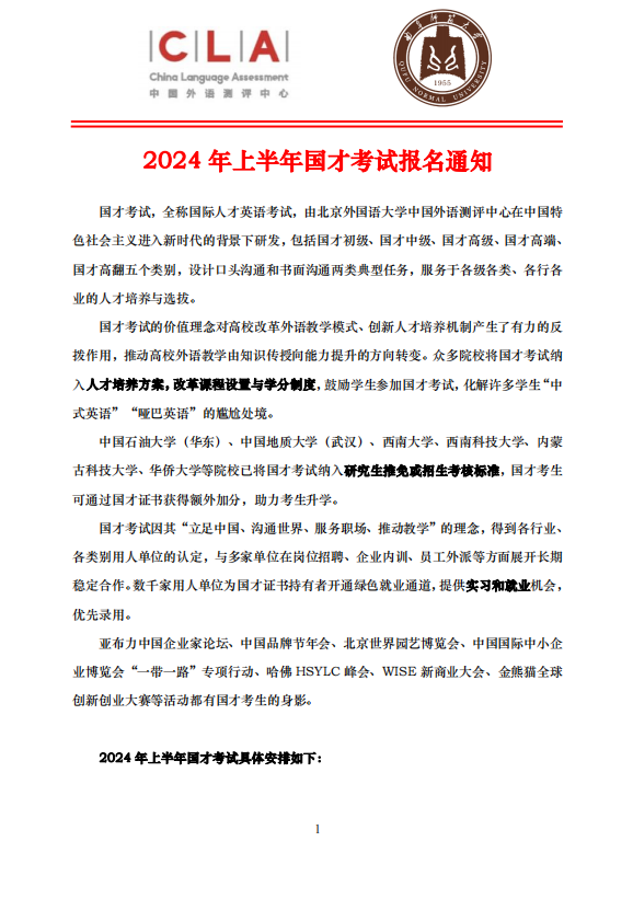 2024年上半年国才考试报名通知