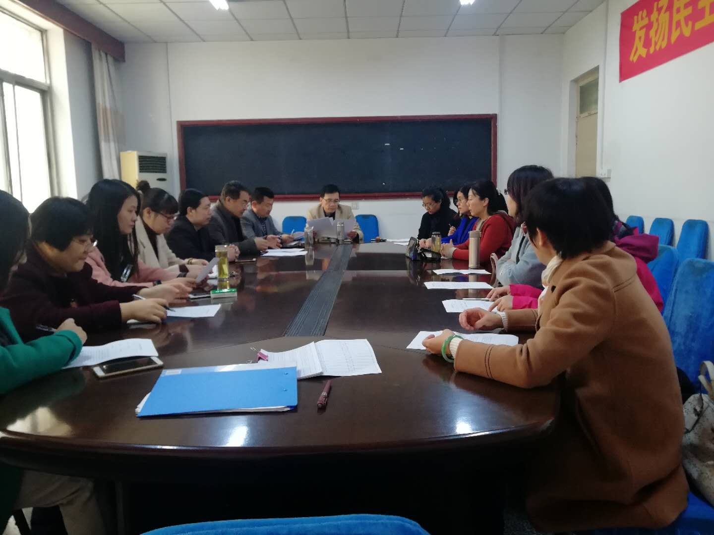 第一阶段是组织生活会。首先由王广成以及杜庆凤两位支部书记传达学校关于召开组织生活会和民主评议党员的有关精神和要求,然后分别代表党支部述职,总结汇报一年来支部的工作,报告支部班子查找出的问题并提出了整改措施。王广成、杜庆凤还就自身存在的问题做了自我批评,对部分党员存在的参与活动不够积极特别是对“学习强国”平台学习不够重视等问题提出了批评意见。接着党员们展开了批评和自我批评,并就学习强国平台的使用交流了经验。随后,两位支部书记强调要认真贯彻上级党委要求,以“学习强国”平台和“灯塔党建在线”平台的学习为契机,努力提升自己的理论和知识水平,及时了解国家的方针政策和法律法规,建设学习型党支部,努力完成本年度的创新活动项目“发挥专业优势,打造学习型支部”,助推学校的“双一流”建设。杜庆凤还就支部创新活动项目的开展做了安排。