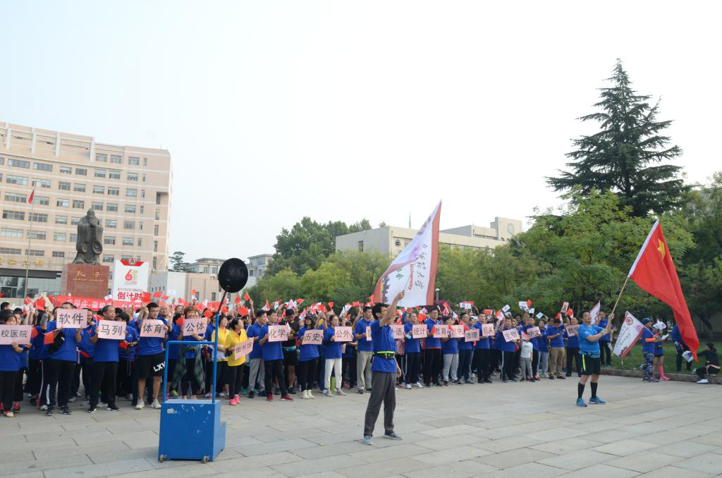庆祝新中国成立71周年、曲阜师大建校65周年,展示曲园教工“团结、奋进、积极、创新”的精神风貌,10月1日上午,NBA篮球直播 多位教师参加NBA篮球直播 “庆国庆·迎校庆”马拉松比赛暨环校园走活动。秉承“犁牛之子”的精神,健步行走在金秋十月阳光明媚的曲园,用活力的汗水记录曲阜师大65周年校庆的光辉历程。通过校园马拉松活动,老师们强身健体,以饱满的热情和精神投入大学英语教学,以实际行动共祝祖国华诞。