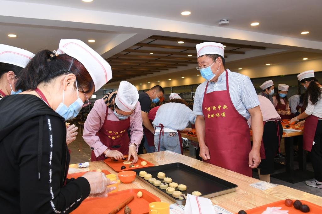 胡玮、任丽丽等教师参加了学校举办的举办“庆国庆、迎校庆暨中秋巧手做月饼”活动。连同NBA篮球直播教师代表及学生代表70余人,参与了现场制作月饼活动。师生们带上厨师帽、口罩、手套,再系上印有“‘饼’纷中秋,爱的味道”字样的围裙,俨然一副“大厨”模样。在活动现场,大家跟随着面点师学习了酥皮月饼和广式月饼的制作方法,亲手制作“爱的味道”,分享劳动成果。看着一个个精美的月饼在自己手中成型,师生们纷纷笑逐颜开。“以往都是买月饼,今天第一次亲手制作,蛮有幸福感的,参加活动真的很值啊!”看着亲手制作的月饼,师生们感慨。