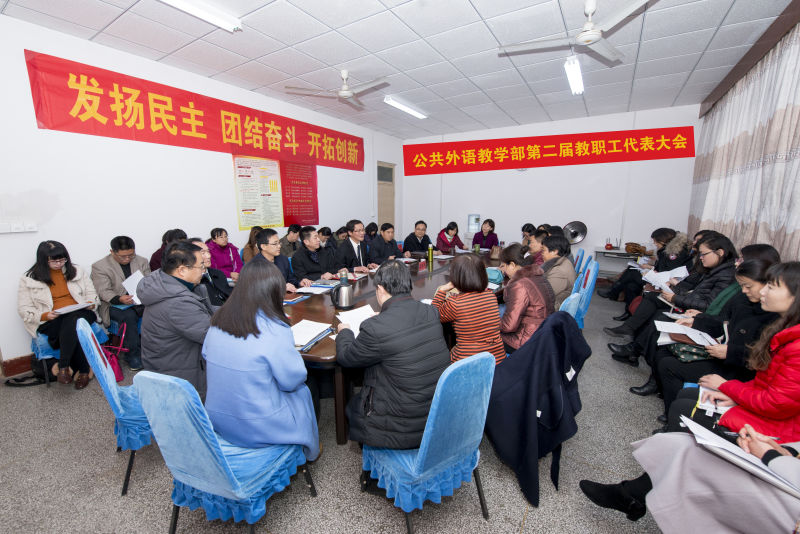 教职工政治生活中的一件大事,是上下学习贯彻党的十九大精神,落实学校“十三五”发展规划,加强基层单位民主政治建设的重要举措。他代表学校党委、校行政向会议的召开表示热烈的祝贺!在热情洋溢的致词中,夏校长也提出开好二级教代会,对于调动广大教职工的积极性、主动性和创造性,参与单位科学管理、民主决策,推动单位民主政治建设,促进各项事业科学发展,具有不可替代的重要作用。 当前,我校正处于加快推进高水平大学建设、“双一流”建设的重要时期,既有难得的发展机遇,又将面临各种严峻的挑战,需要我们进一步强化机遇意识、发展意识,集思广益,认真思考,科学谋划。本次会议将听取主任工作报告,讨论审议外语部建设发展的重大问题,内容重要,涉及到外语部未来的发展,涉及到全体教职工的切身利益。希望大家高度重视,以饱满的政治热情、严肃的工作态度和强烈的主人翁意识,认真履行自己的神圣职责,积极为外语部发展理思路、提建议、出点子,努力把这次会议开成一次凝聚力量、鼓舞人心的大会,一次科学谋划、促进发展的大会。