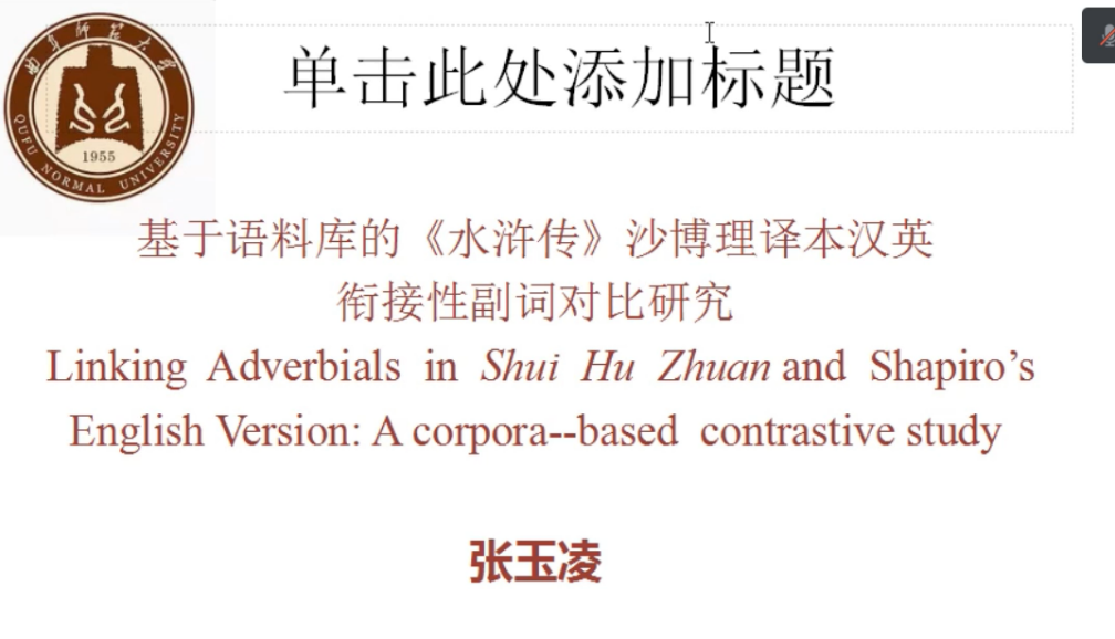 张玉凌老师用语料库的方法对《水浒传》沙博理译本中的衔接性副词进行了汉英对比研究,通过对原文与译文、以及译文与英语原创文学中的衔接性副词进行分类量化对比,发现沙译本主要使用逻辑显化、使用was、when等表述顺序、译为靠语序连接的意合句、译为对应副词、省略不译等方法消解衔接性副词,并总结了沙译本的特点,认为沙博理翻译的特别之处,既非亦步亦趋追随原文,也非任意“意译”,而是最大化表现汉语原文的语言特点。