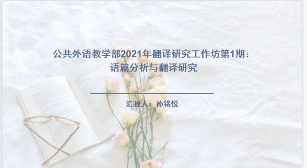 在腾讯会议上举办了首次翻译与语言研究工作坊。会议在王福祥主任的简短介绍后开启,孙铭悦、张玉凌、龙磊三位老师分别就各自研究领域分享了宝贵的学术观点和研究发现,随后王福祥主任、孙伟副主任、杜庆凤老师对三位老师的报告进行了精彩点评。