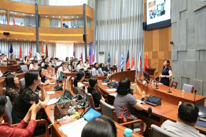 工作坊包含三场主题报告。首场报告由北京物资学院外语学院副院长、北京外国语大学外国语言学及应用语言学博士、全程参与教育部考试中心《中国英语能力等级量表建设研究》综合组及语用组研究工作的王淑花教授对《中国英语能力等级量表》进行深入解读。随后,British Council英国文化教育协会英语测评外国专家Dylan Burton从开发背景、框架内容、相关测试三个方面对《欧洲语言共同参考标准》进行了详细解读,并与老师们进行了互动。最后,British Council英国文化教育协会考试部官员文漪对雅思白皮书进行了解读,并对国际英语测评进行了介绍。