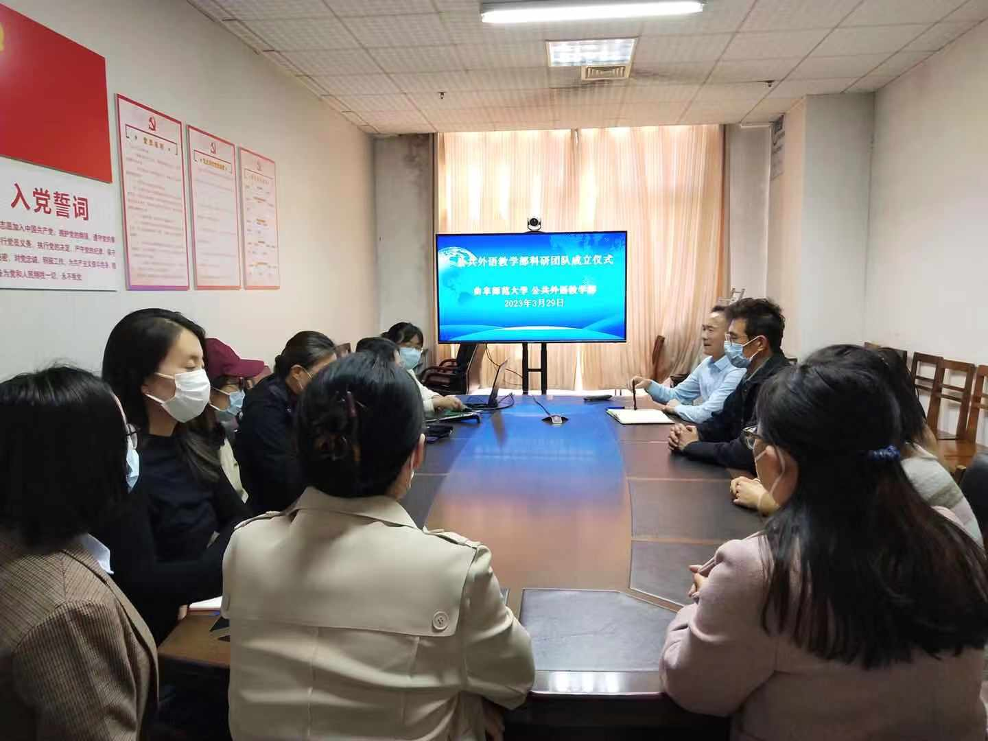 共成立了“语言学研究”、“语言教学研究”、“翻译研究”和“文学与文化研究”四个科研团队。每个团队包括一个带头人和10位左右的骨干成员,规模不大,便于开展小范围交流。科研团队的主要任务是由带头人召集团队成员定期或不定期开展“阅读心得交流”、“学术探讨”、“研究汇报”和“学术沙龙”等活动,目的是把学术研究落到实处,起到科研催化剂的作用。