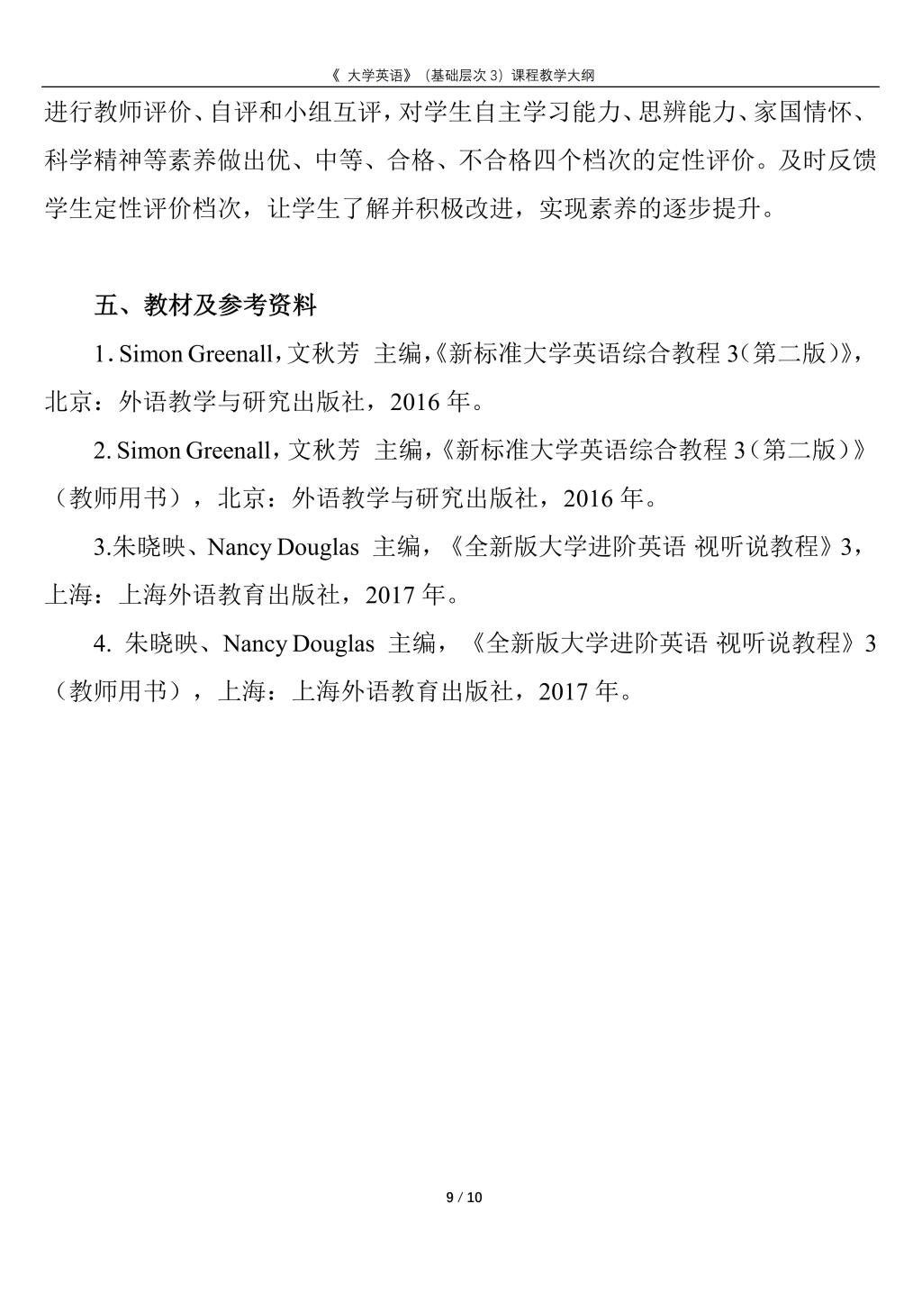 大学英语(普通类基础层次3)课程教学大纲(2022版)