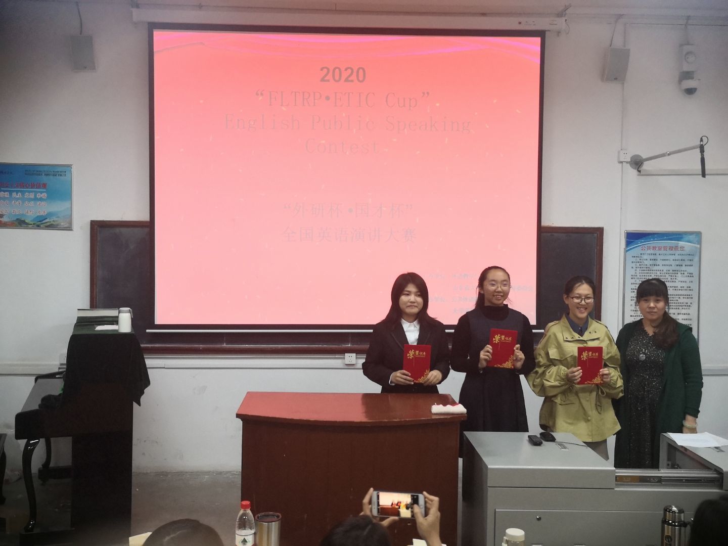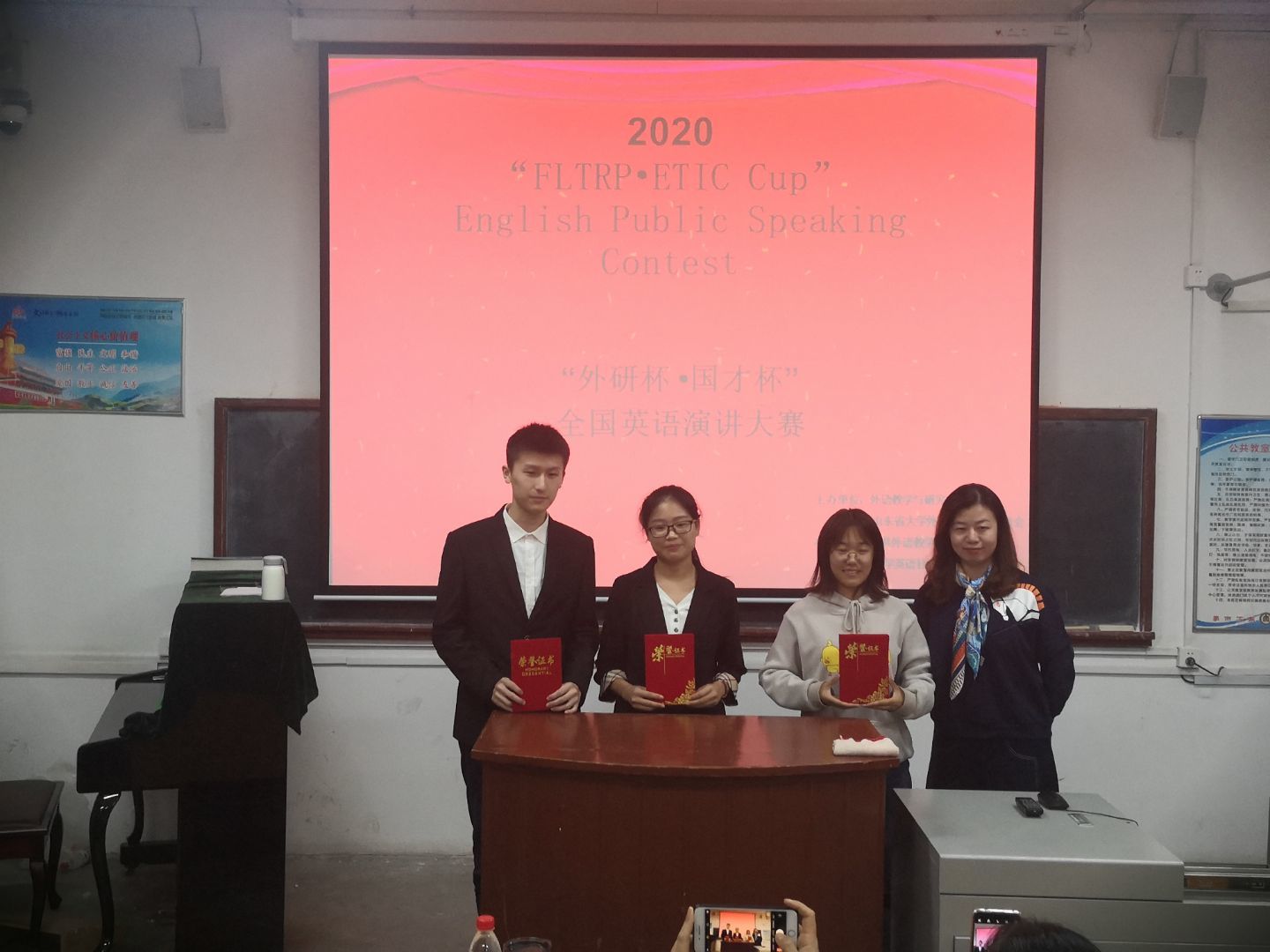 比赛结束后,老师们对本次演讲大赛做出各方面的总结和评价,并对各位选手进行了点评和指导,帮助选手更有针对性地调整自身的问题,学习优秀的方面,不断提高英语口语演讲能力。比赛最后,老师们为各位获奖选手颁奖并合影。