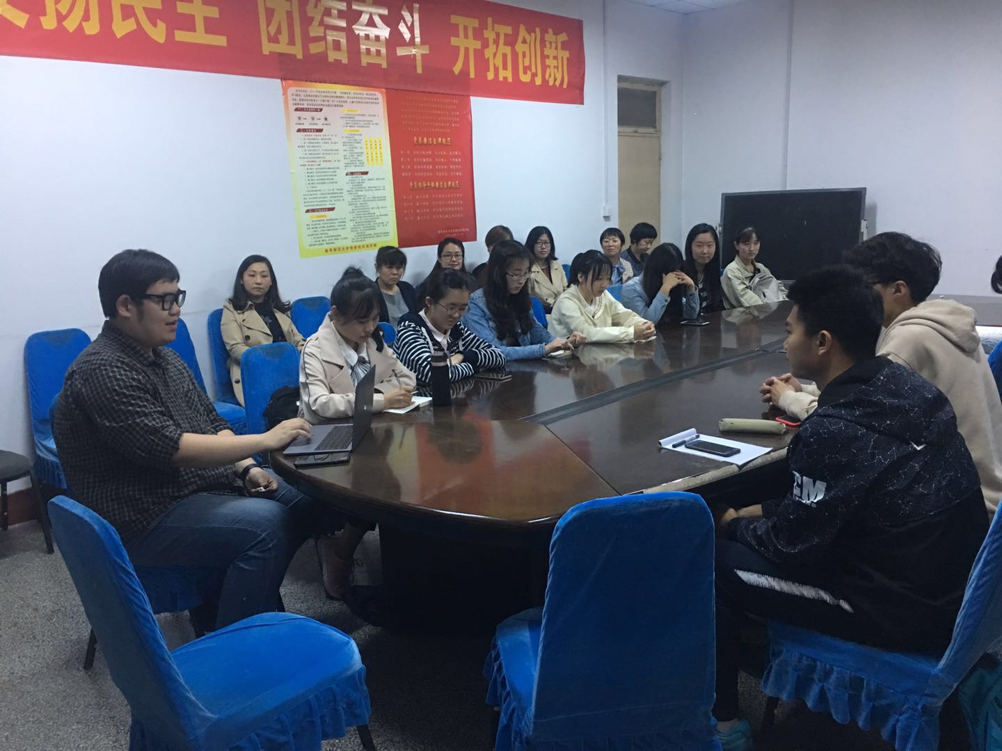 本次活动旨在帮助来自各个院系的2019届选手准备于五月在济南举行的全国大学生英语竞赛决赛。交流会上,王显明老师首先向大家介绍了比赛的情况,以及我校对学科竞赛的支持。各位指导老师分别和各自的指导学生进行了对接交流。接下来,田星月同学与臧英杰同学分别向大家介绍了复赛中笔试和面试部分需要注意的问题和准备比赛的建议。最后,各位指导老师与同学们一起讨论了比赛的特点与近期需要进行的准备,并为各位选手提出了宝贵的建议。