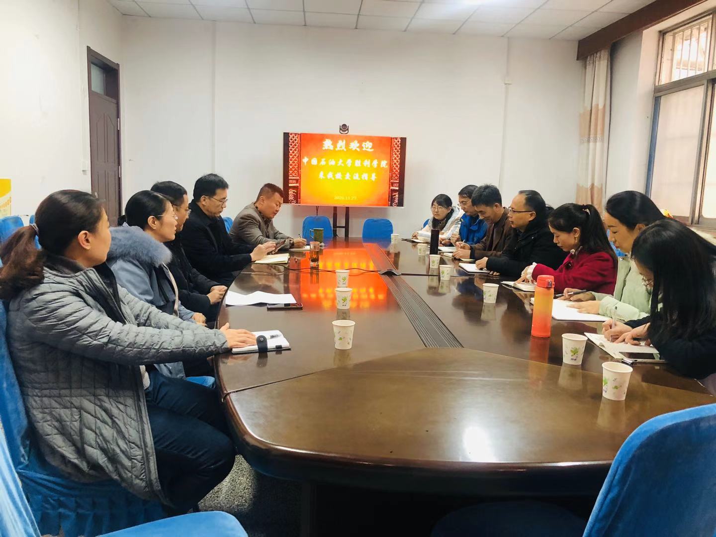 2020年11月27日,中国石油大学胜利学院基础科学学院副院长孙涛率外语系主任盛庆全、副主任庞晓峰以及骨干教师一行7人来NBA直播LINE