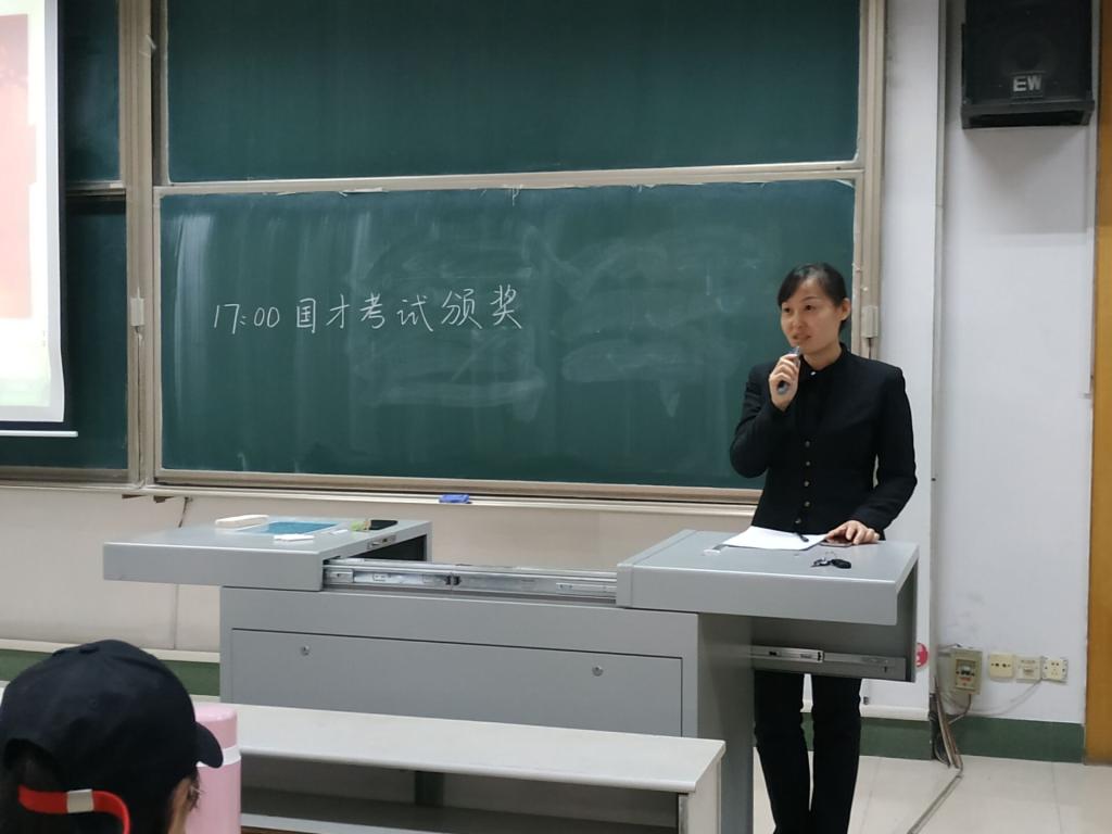 作为考试组织单位,北京外国语大学外语教学与研究出版社区域经理李洪旺宣布了2019年5月国才考试报名工作正式启动,简单介绍了本赛季考试的一些变化和注意事项;随后宣读了获得国才优秀、良好、合格的同学名单。李洪旺经理宣布颁奖开始。