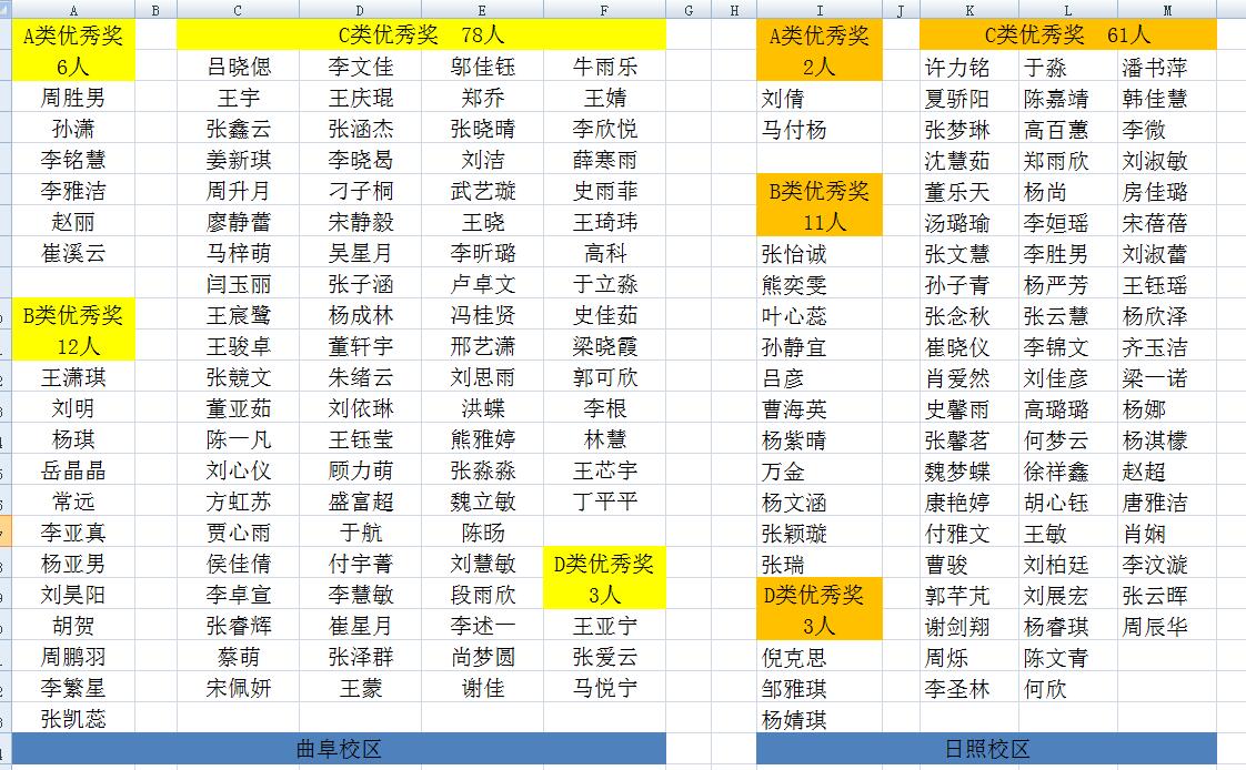 附优秀奖学生名单: