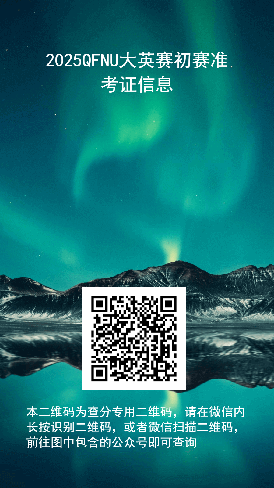 请考生们即日起用微信扫描如下二维码进入查询界面,输入姓名和学号查询准考证信息,自行打印准考证。